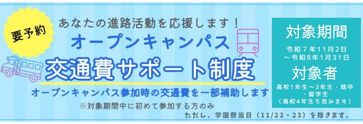 ※学園祭期間中(令和7年11月22日・23日)は対象外です。