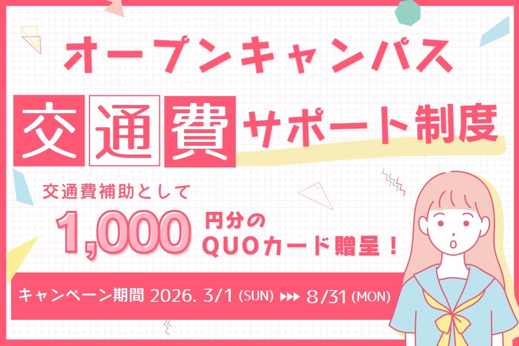 オープンキャンパス交通費サポート制度(1000円分QUOカード)