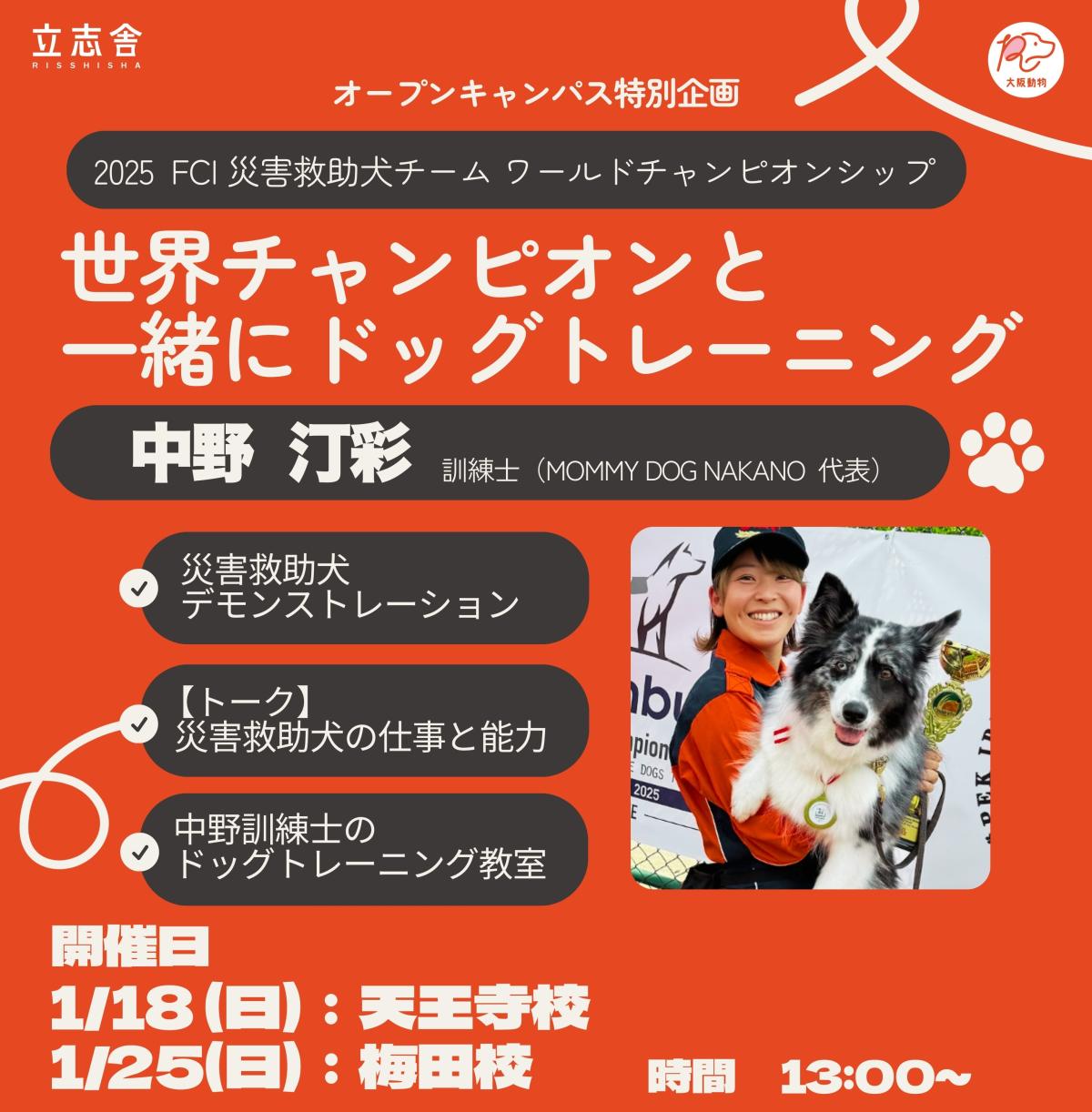 【オープンキャンパス特別企画】世界チャンピオンとドッグトレーニング