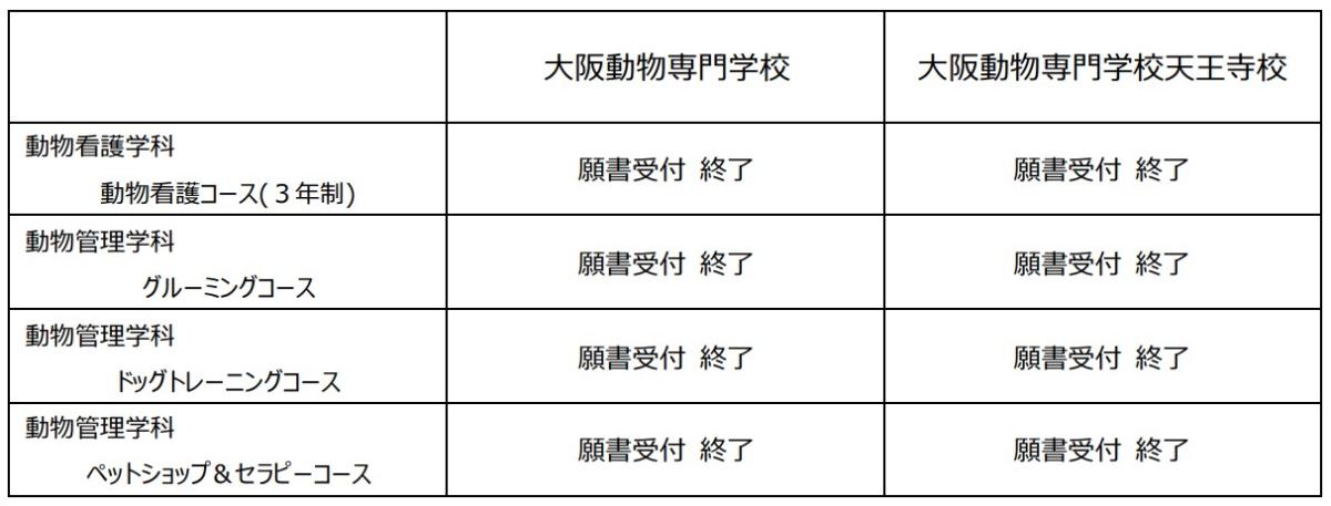 大阪動物専門学校、大阪動物専門学校天王寺校の両校において、2026年度入学の願書受付を全コース締め切りといたします。